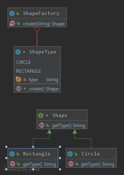 이런 비슷한 객체들을 Shape Factory가 객체를 생성하게 위임하는 것이다!!!