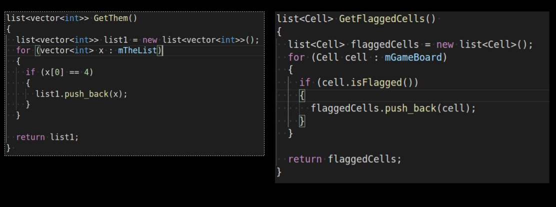 - 의미 있는 네이밍 flaggedCells ↔ list1