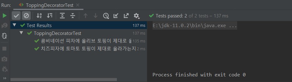 클래스 다이어그램에 나타난대로 pizza 객체를 합성시킨 데코레이터 클래스입니다