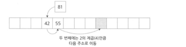 - 선형탐사와 유사한데, 다만 이동폭이 제곱으로 늘어날 뿐이다!!