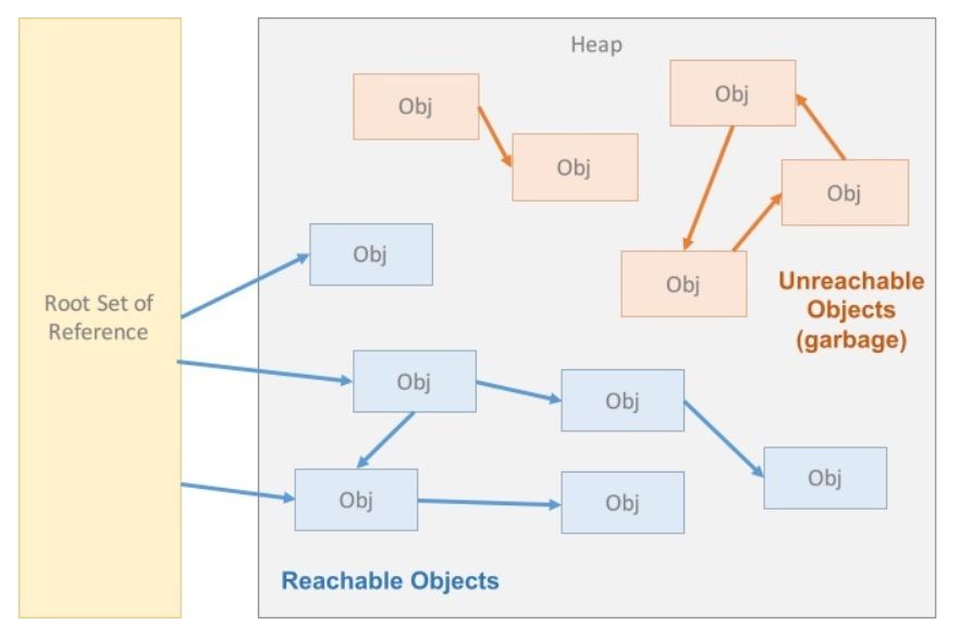 - Root Reference로 부터 Reachable할 수 있는 객체는 냅두고, UnReachable한 객체를 삭제하는 것!