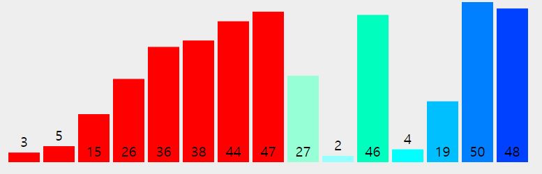 - 이러한 과정을 끝날 때까지 반복하면 정렬이 끝난다~!