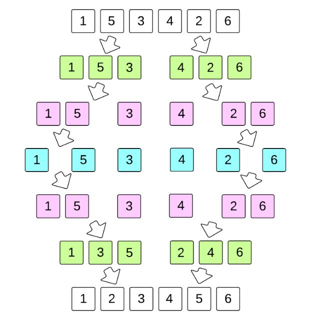 * 분할정복의 대표적인 알고리즘의 예시로, 시간복잡도가 항상 일정하기 유지된다는 것이 장점이다