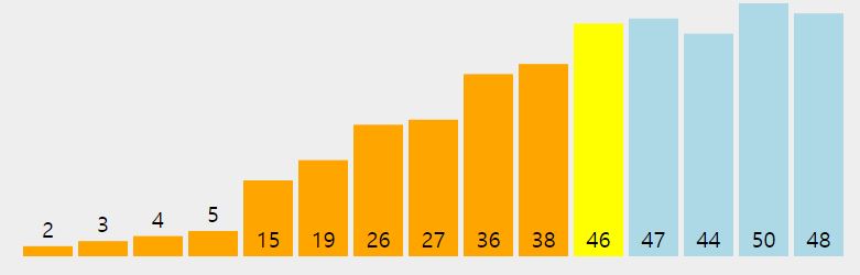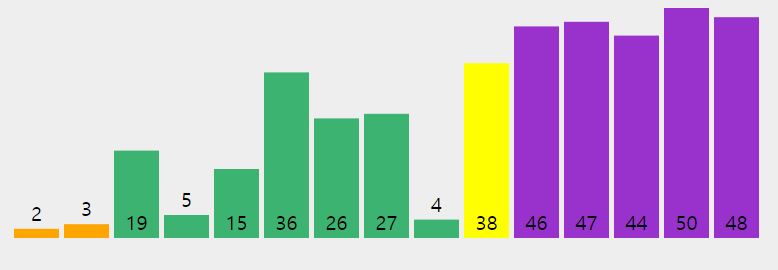 * pivot을 가운데로 선정하여 파티션 분할하면 성능을 개선할 수 있다.