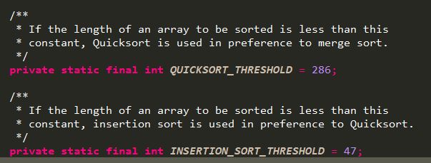 - 실제로 java의 DualPivotQuicksort 클래스는 N의 크기에 따라 정렬방법을 고른다!