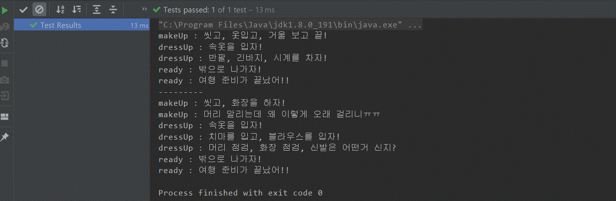 * readyToTrip 메서드는 사람들이 여행 준비를 하는 로직을 나타내는 메서드다!