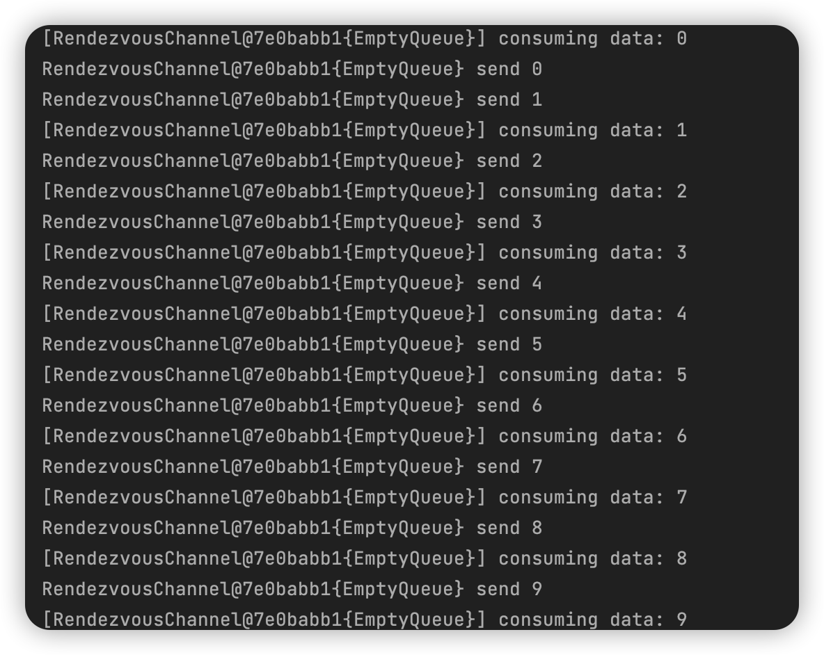 아하 capacity 정책이 RENDEZVOUS 이고, BufferOverflow 정책이 SUSPEND 라서 그렇구나