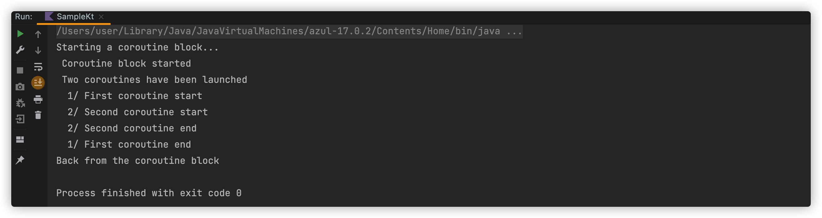 예상했던대로 1번 코루틴과 2번 코루틴이 동시에 시작하는 것을 볼 수 있습니다.