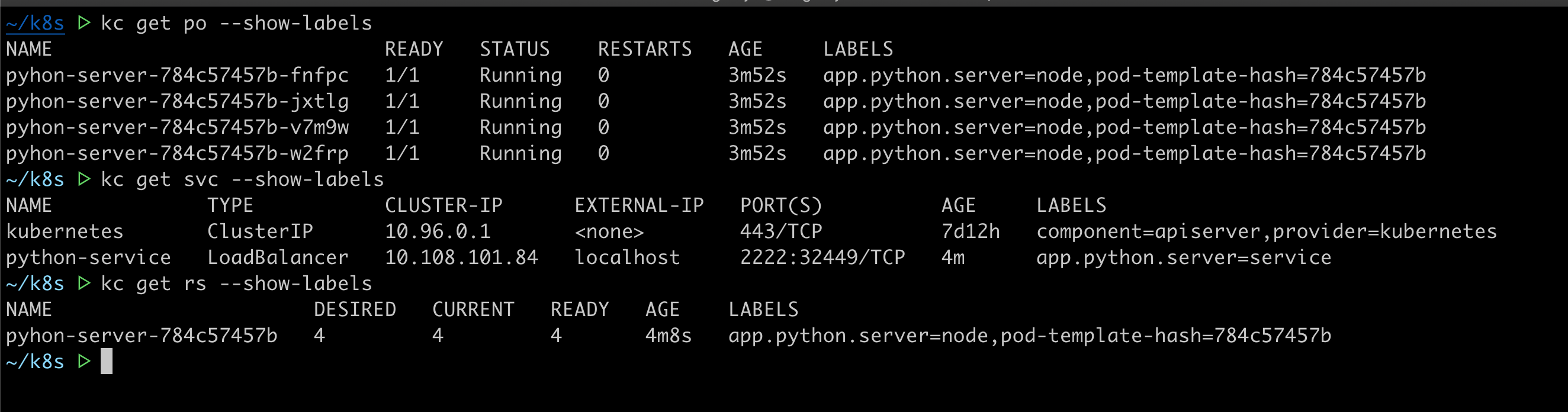 한번에 4개의 Pod가 생성되었고, 정상적으로 label이 설정된 것을 볼 수 있습니다 ㅎㅎ