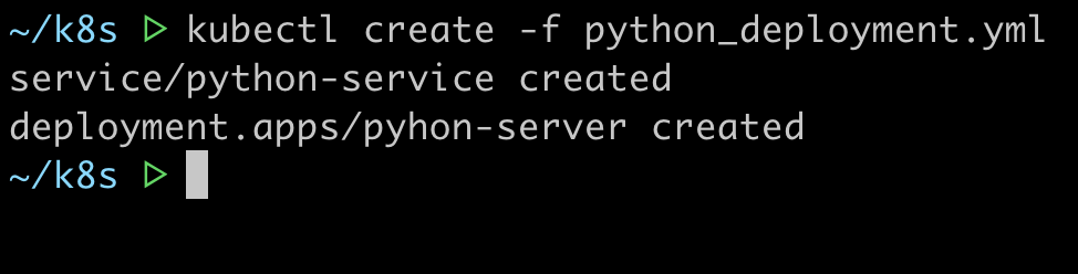 위에서는 kubectl이라는 명령어 prefix를 붙이고, create -f 명령을 통해 한번에 service와 deployment를 실행시켰습니다~!