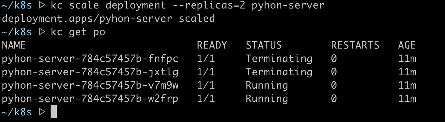 deployment의 replica를 2개로 설정하겠다~! 라는 명령입니다 ㅎㅎ
