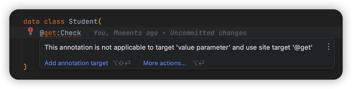 - Use-Site Target 에 따라 annotation 이 붙는 위치가 달라지니 default 값을 사용할게 아니라면 꼭 명시하자