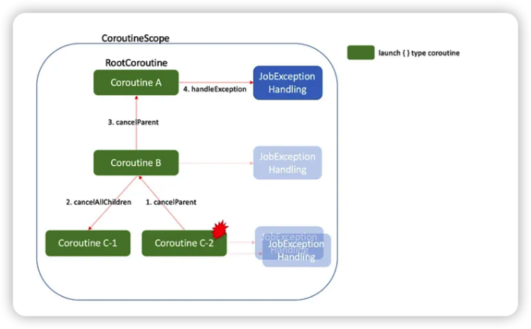 - 단 그렇기 때문에 자식 Coroutine 마다 별도로 ExceptionHandler 를 정의하여 처리하는 것이 좋다