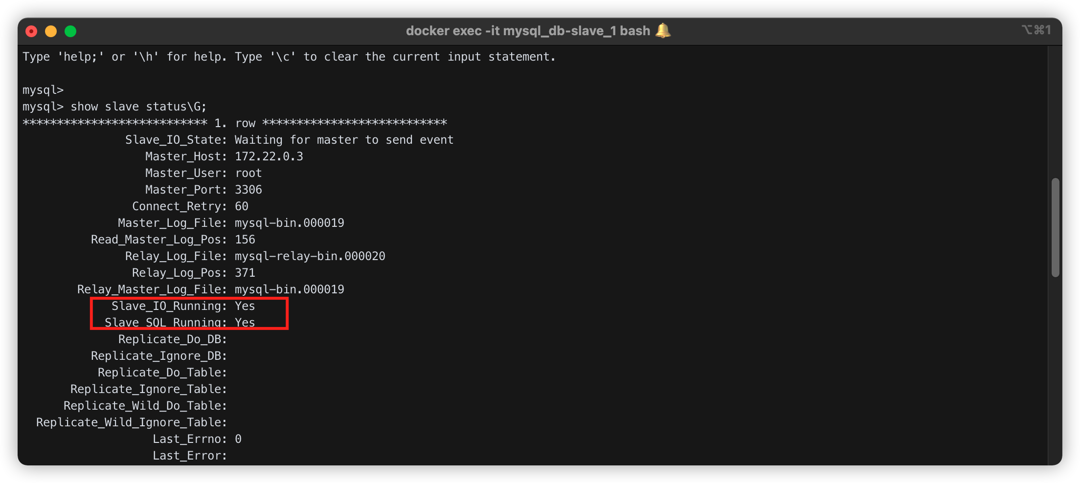 CHANGE MASTER TO MASTER_HOST='172.22.0.3', MASTER_USER='root', MASTER_PASSWORD='password', MASTER_LOG_FILE='mysql-bin.000013', MASTER_LOG_POS=0, GET_MASTER_PUBLIC_KEY=1;