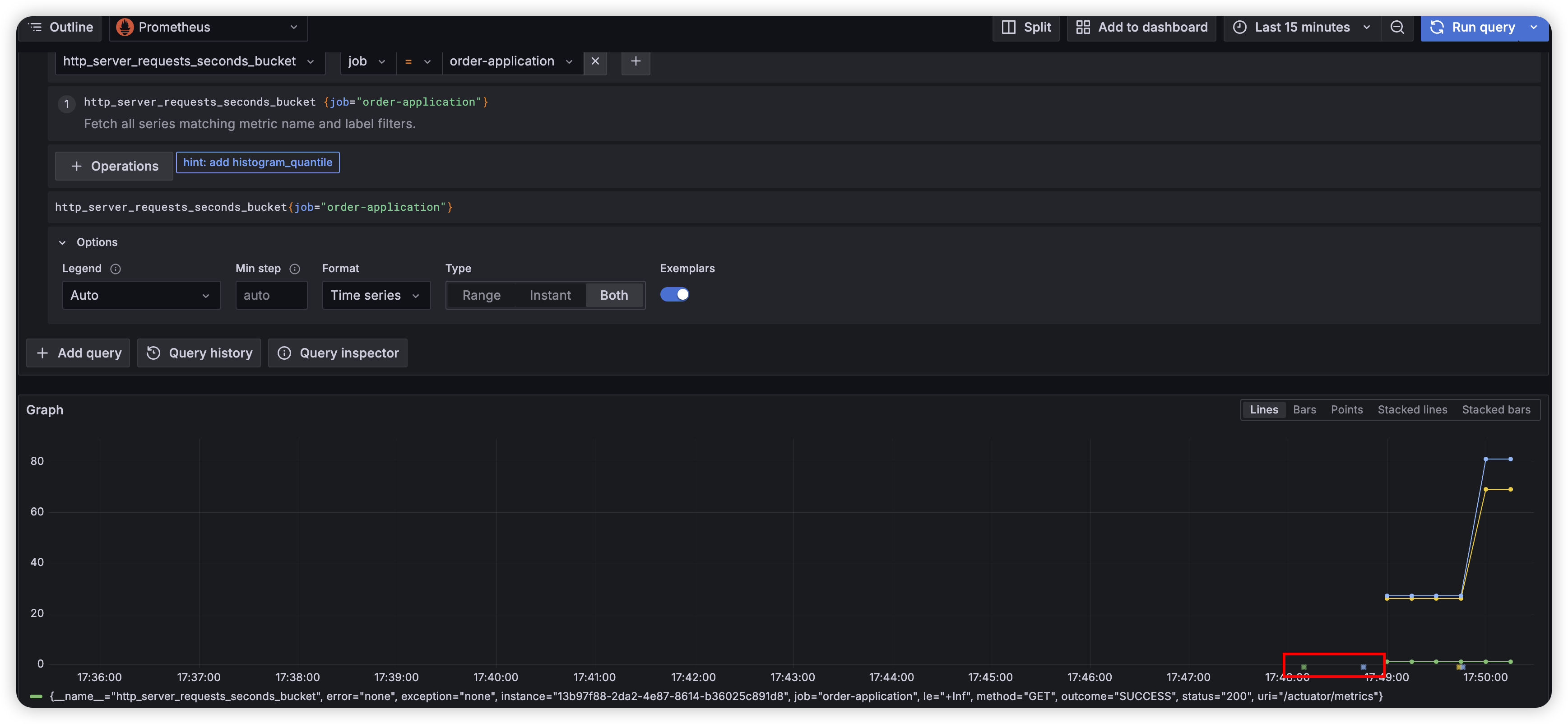 exemplarTraceIdDestinations 에서 설정해주었기 떄문에 sampling 되었다고 볼 수 있습니다.