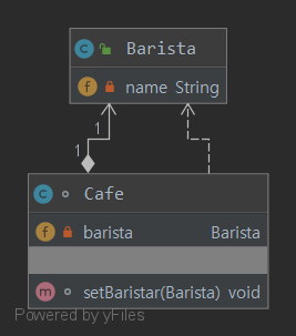 다이어그램을 보시면 아시겠지만, Cafe가 Barista를 향하고 있습니다!