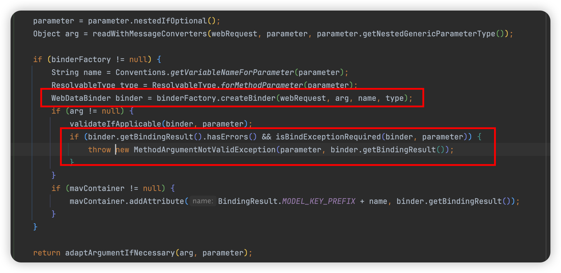 binder 를 생성하는 로직에 의해 result 를 기반으로 Error 가 발생된게 있다면 예외를 발생시키는 것을 알 수 있네요