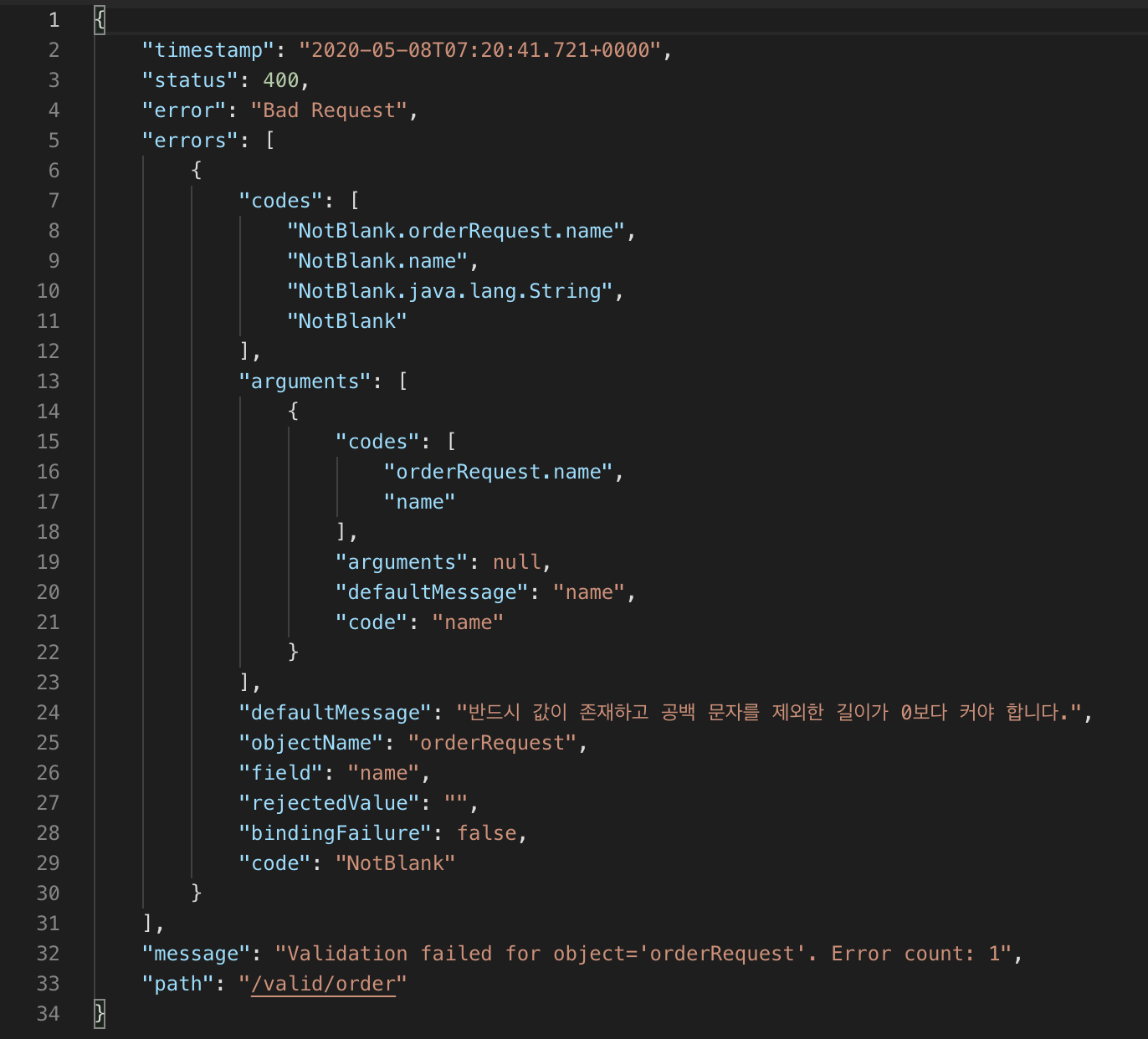 expect status는 위에서 보았듯이 BadRequest(400)을 응답받게 됩니다!