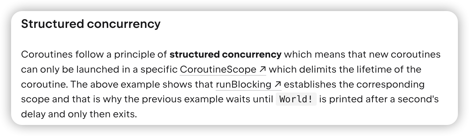 또 하나 coroutine 은 근본적으로 structured concurrency 컨셉을 제대로 활용하였다고 언급되는데요